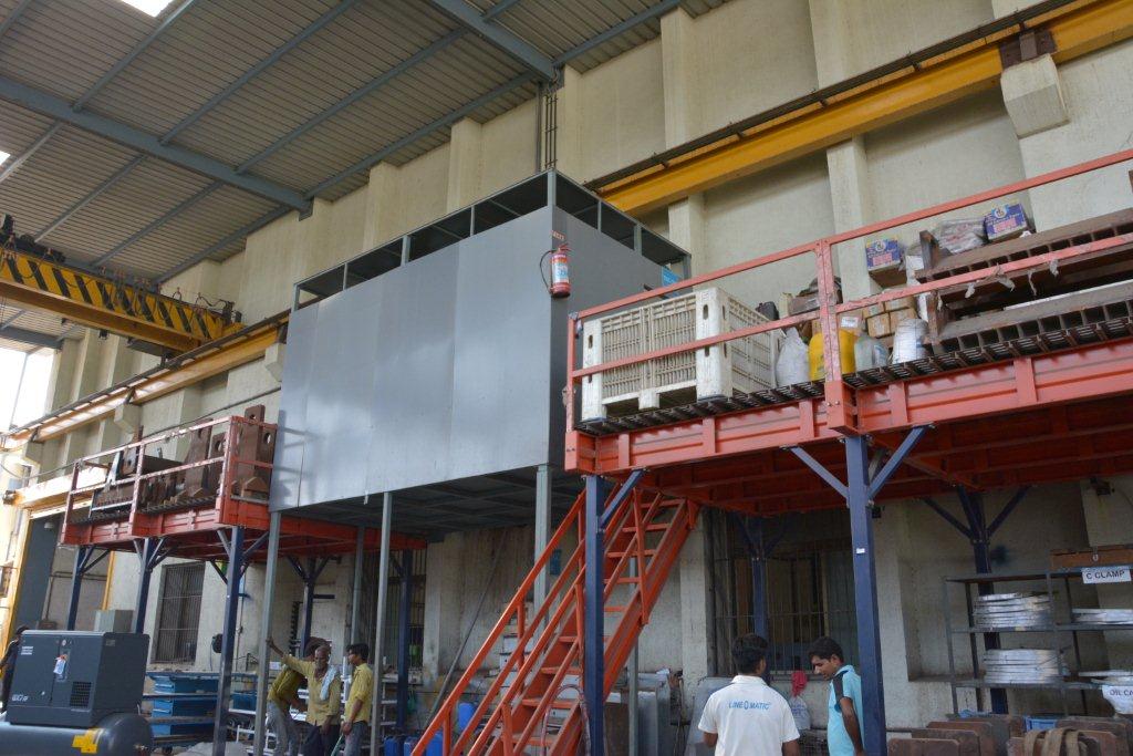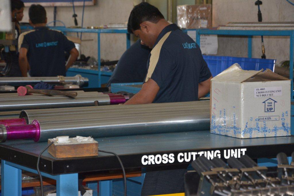 The department where individual sections are manufactured, for example, the reel-to-sheet ruling/flexo printing machines, cutting machine, binding machines. Line O Matic’s production floor is automated such that it aid workers do their work efficiently. Here the pneumatically controlled drilling system is placed overhead for ease of work