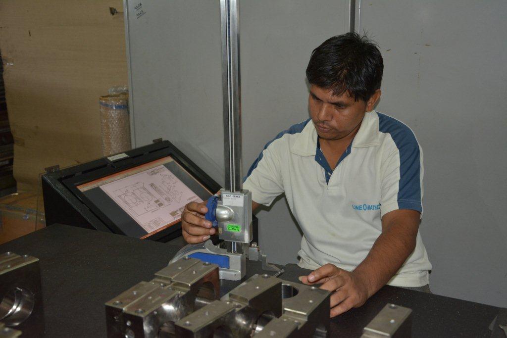 Besides hosting live demonstrations for customers, Line O Matic also welcomes individual buyers who desire to see machines being manufactured. Here one of the Indian customers on a visit to Line O Matic, to see and finalise a deal