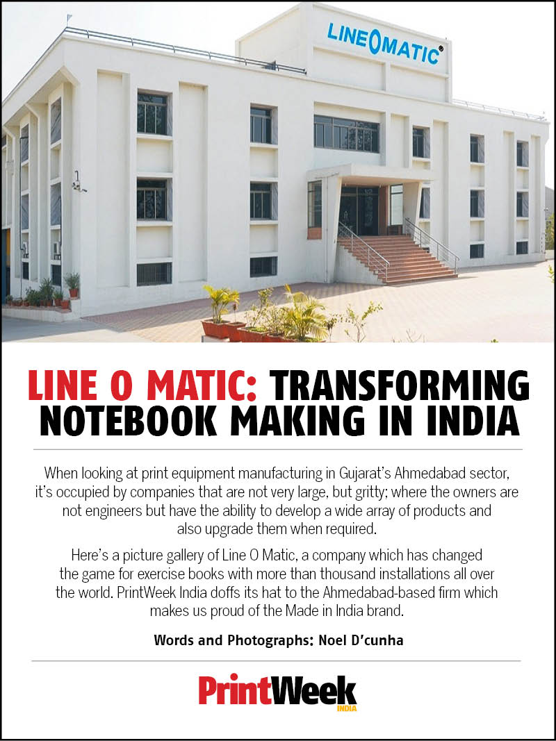 When looking at print equipment manufacturing in Gujarat’s Ahmedabad sector, it’s occupied by companies that are not very large, but gritty; where the owners are not engineers but have the ability to develop a wide array of products and also upgrade them when required.PrintWeek doffs its hat to the Ahmedabad-based Line O Matic, a game changer for exercise books with over 1,000 installations worldwide and makes us proud of the Made in India brand. By Noel D'cunha