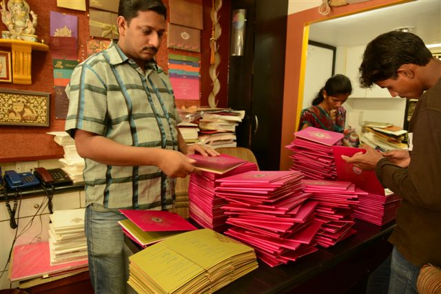 The big fat Indian wedding industry with a size of more than Rs 1,00,000-cr, spends 1% on invitation cards. With over 170 retail and wholesale shops producing an array of wedding cards, Khadilkar Road in Mumbai boasts of invitations ranging from Rs 5 per card to the super-premium type which is worth Rs 10,000.