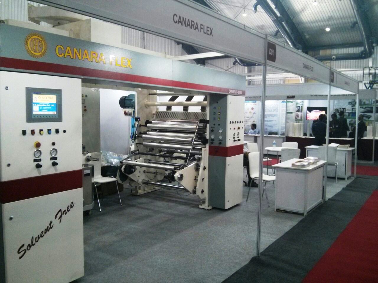 Canara Flex showed the power of its rotogravure machine. The company also manufactures laminators, coating cum laminators, slitting machines plus flexo equipment