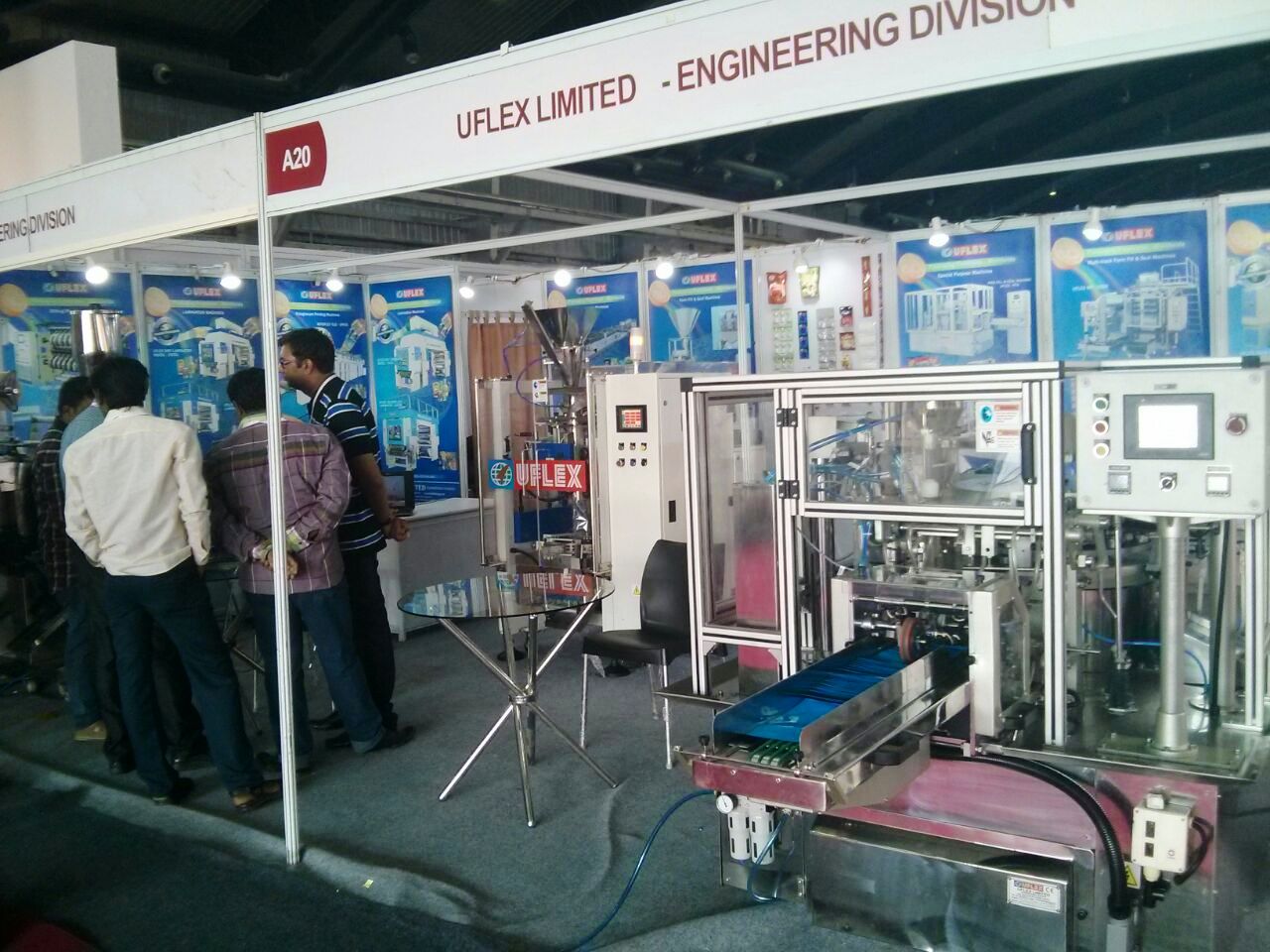 Uflex: Machines on display for form fill and seal. The demonstrations with liquid, paste, powder, granules, etc showed the range of products from this Noida-based manufacturer