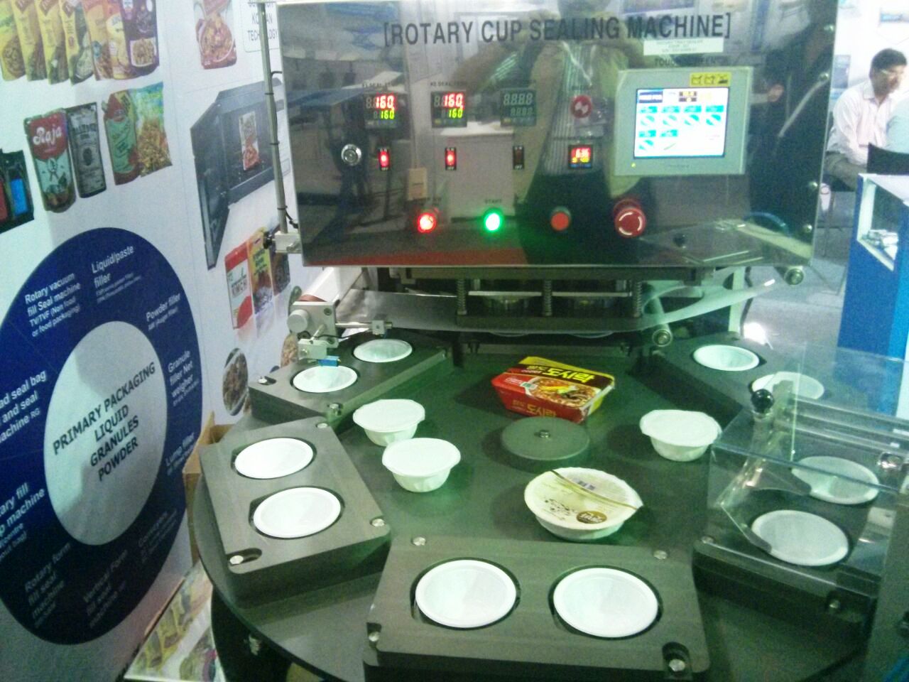 The rotary cup sealing machine at the Parle Global Technologies stall where equipment for the F&B industry was displayed