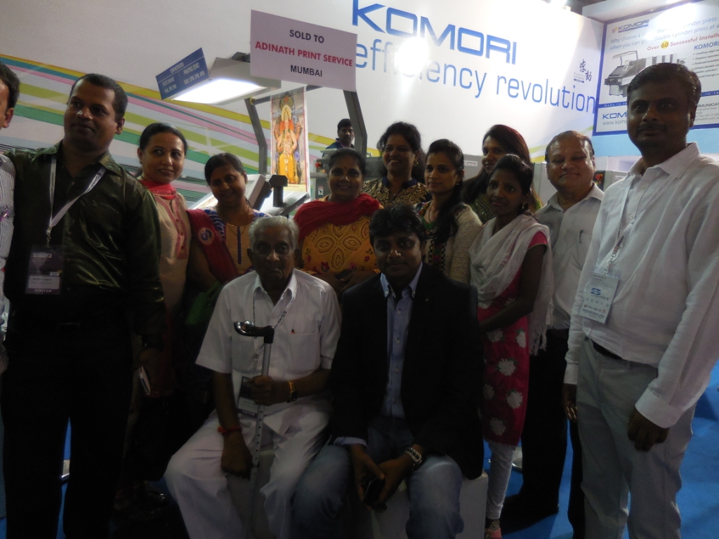 The jubilant family members of Sanjay Doshi, managing director of Adinath Print Service, who picked up the Komori Enthrone S429 four-colour press on the Insight Stand. Insight was the only exhibitor which ran live demos of a four-colour press
