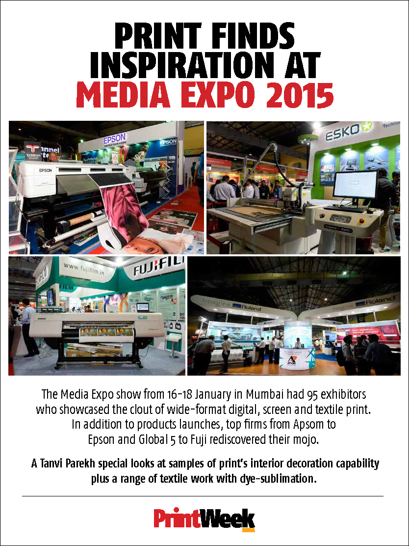 The Media Expo show from 16-18 January in Mumbai had 95 exhibitors who showcased the clout of wide-format digital, screen and textile print. In addition to products launches, top firms from Apsom to Epson and Global 5 to Fuji rediscovered their mojo. A Tanvi Parekh special looks at samples of print's interior decoration capability plus a range of textile work with dye-sublimation.Photographs: Disha Gandhi