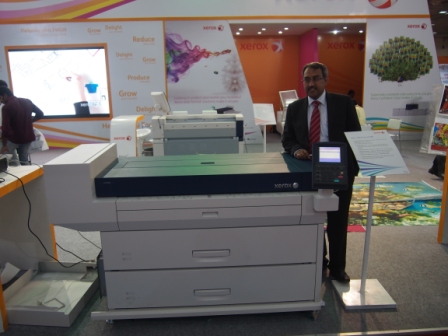 Pankaj Kalra at the Xerox stall. The digital player launched IJP-2000, a wide-format colour printer. Along with this, Xerox also had Phaser 780 and Xerox 570 digital presses