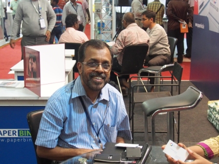 Anuj Mehta of Paper Bind with an installed base of 43 for their post-press devices. The ProTopic kit, was on view at PrintExpo