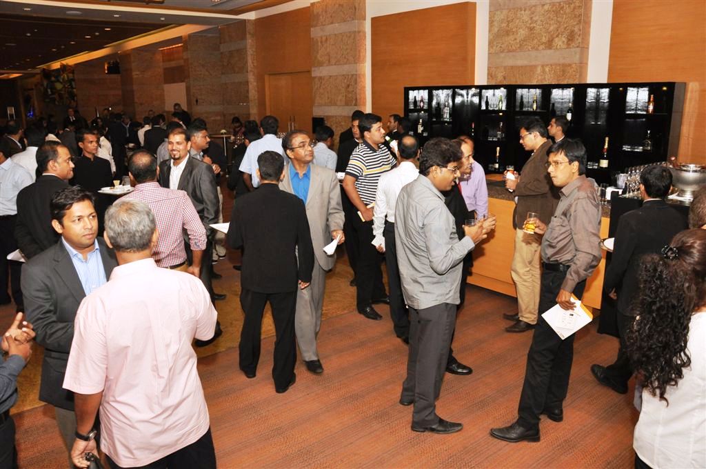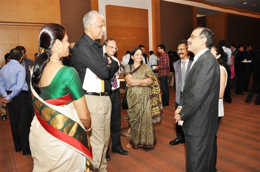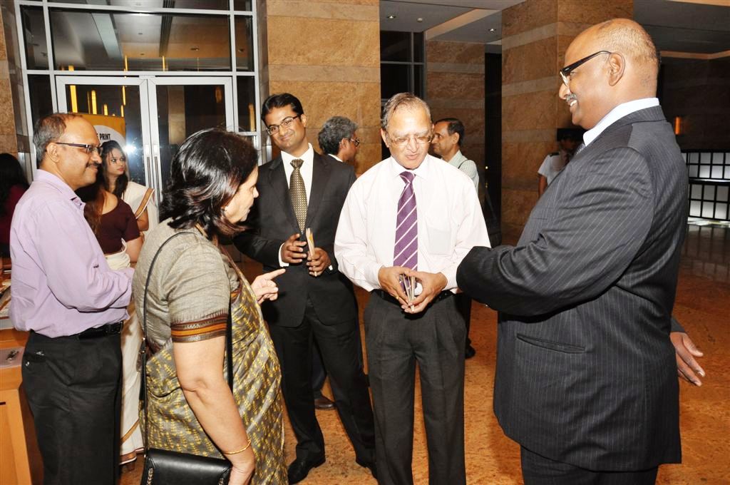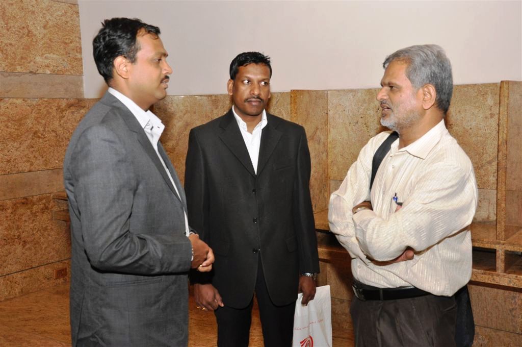 Narendra Parmar of Print Samachar in a serious discussion with few fellow attendees