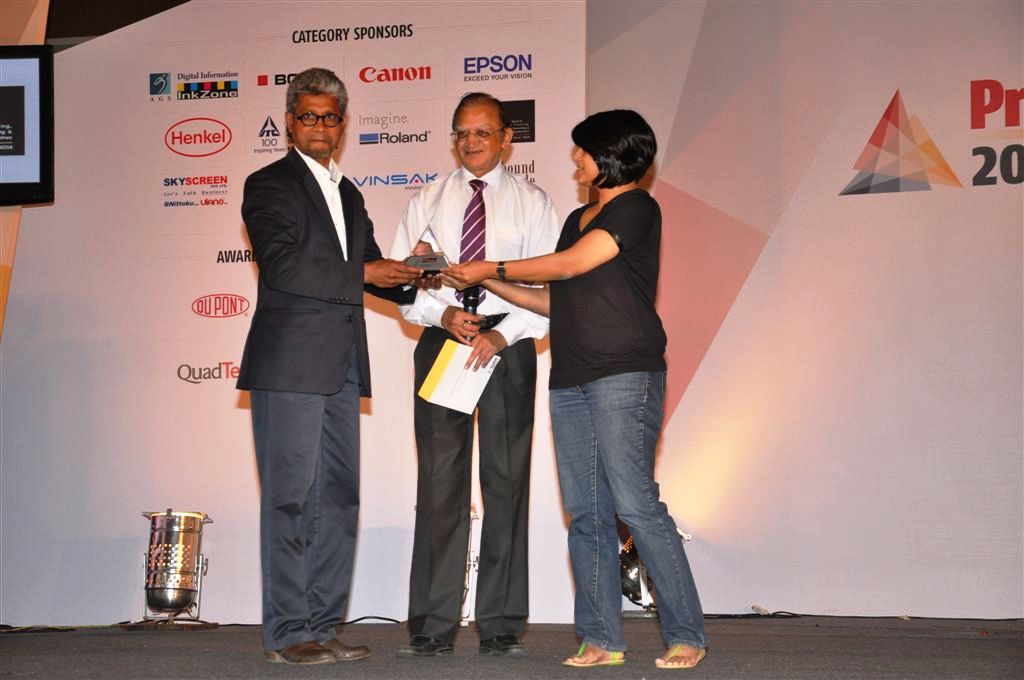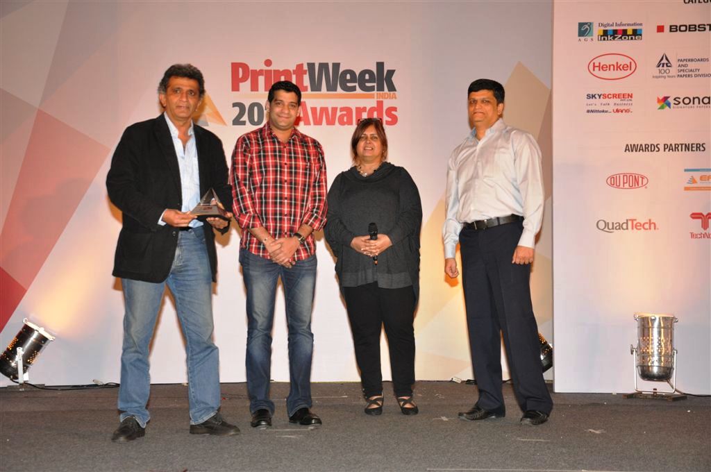 Innovative Printer of the Year was a tie. Mumbai-based Parksons Graphics collecting their award (Joint winner)