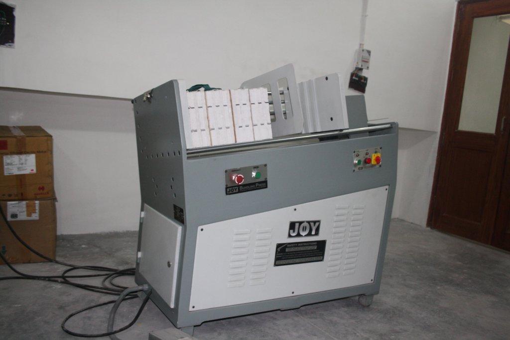 Joy's bundling press is ideally suited for pressing and bundling of folded sheets (Signatures), brochures, book-blocks etc, for perfect and hard-case binding process. Manku believes that every hard case bound book must be rounded and backed.