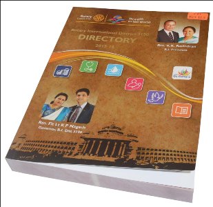 VISHWAKALA PRINTERS | Rotart Internal District 3190 Directory Length of run: 1000Pre-Press: Apogee workflow and Kodak Trendsetter 400 systemPress: Heidelberg XL 75 and Heidelberg SX 52 (four-colour plus online coating with IR dryer)Post-Press: Velvet lamination for cover, spot UV and gold foilingPaper: 300gsm gloss art board for cover and 100gsm gloss art paper for the inner pages