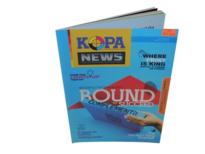 VISHWAKALA PRINTERS | KOPA News Length of run: 700Pre-Press: Apogee workflow and Kodak Trendsetter 400 systemPress: Heidelberg XL 75 and Heidelberg SX 52 (four-colour plus online coating with IR dryer)Post-Press: Velvet lamination for cover, spot UV and gold foilingPaper: 300gsm gloss art board for cover and 130gsm gloss art paper for the inner pages