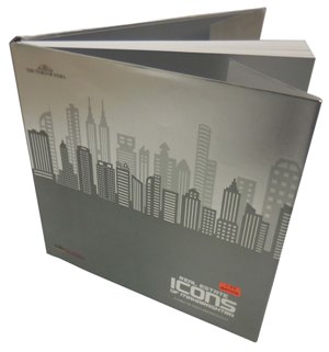 SILVERPOINT PRESS | Real Estate-Icons Of Maharashtra Brochure Length of run: 1500Art: CMYK plus special silverPre-Press: Agfa CTP system, Apogee workflow and GMG solutionsPress: Heidelberg LX (five-colour plus online coating)Post-Press: Texture UV, satin aqueous coating, silver foil stamping, silver lamination, embossing and debossing. PUR binding on Paper Bind 444 PRO PlusPaper: 170gsm BILT Royal matt paper for the cover and jacket, 190gsm Mont Blanc Extra White for the text pages and 3mm grey board