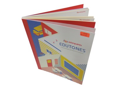 PRAGATI OFFSET | Asian Paints-Edutones Length of run: 5000Art: Seven colour extended gamut (CMYK + Orange, Green, and Blue)Pre-Press: Seperated in seven colours by using the extended gamut system. CTP output with 250 lpi screeningPress: Komori Lithrone 740Post-Press: Thumb tab cutting for all pages and PUR binding on Kolbus Ratio Binder with Nordson PUR systemPaper: 150gsm art paper