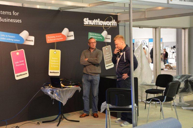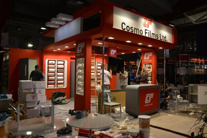 Cosmo Film’s stand being set up. This Indian manufacture will showcase BOPP, coated and thermal laminating films