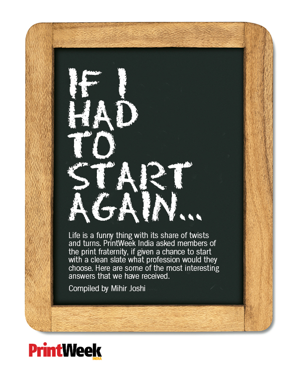 Life is a fun thing with its share of twists and turns. PrintWeek India asks members of the print fraternity, if given a chance to start with a clean slate what profession would they choose. Here are some of the most interesting answers that we have received.