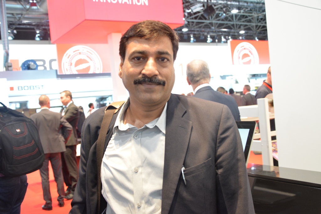 Managing director of Globe Print N Pack from Mumbai, Rahul Gupta at the show. On the verge of finalising a high end die-cutter