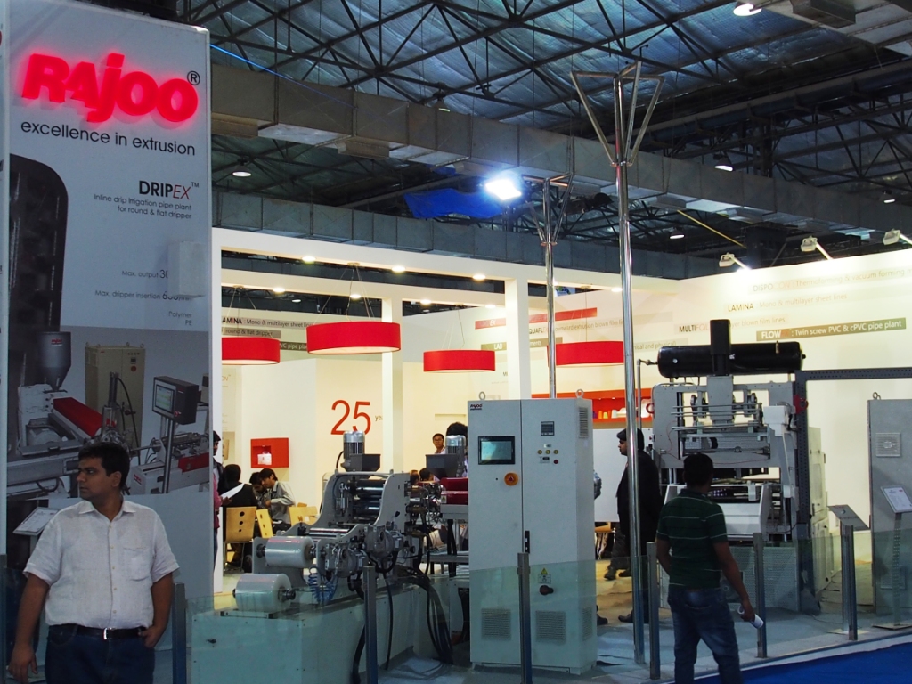 Junagadh-based specialists of plastic extrusion machinery, Rajoo Engineers' stall was abuzz with activity as it demonstrated blown film lines of plastic extrusion