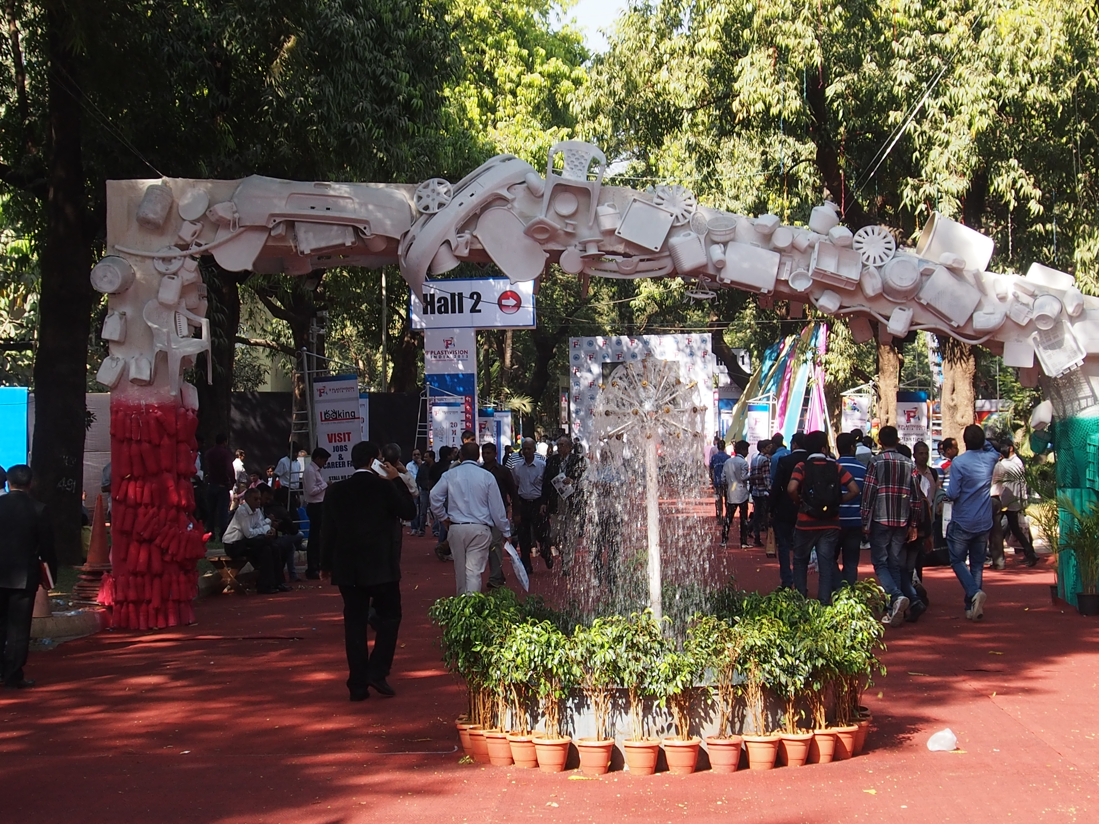 An arc of plastic products, depicting the spectrum of plastic applications, stood at the entrance