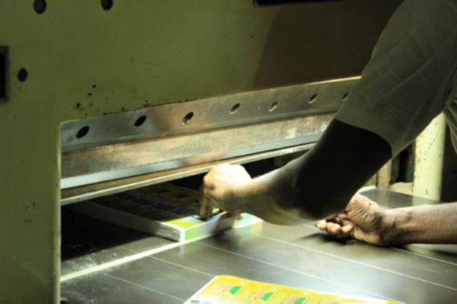 In packaging process, die setting, lamination, carton pasting were explained to the students