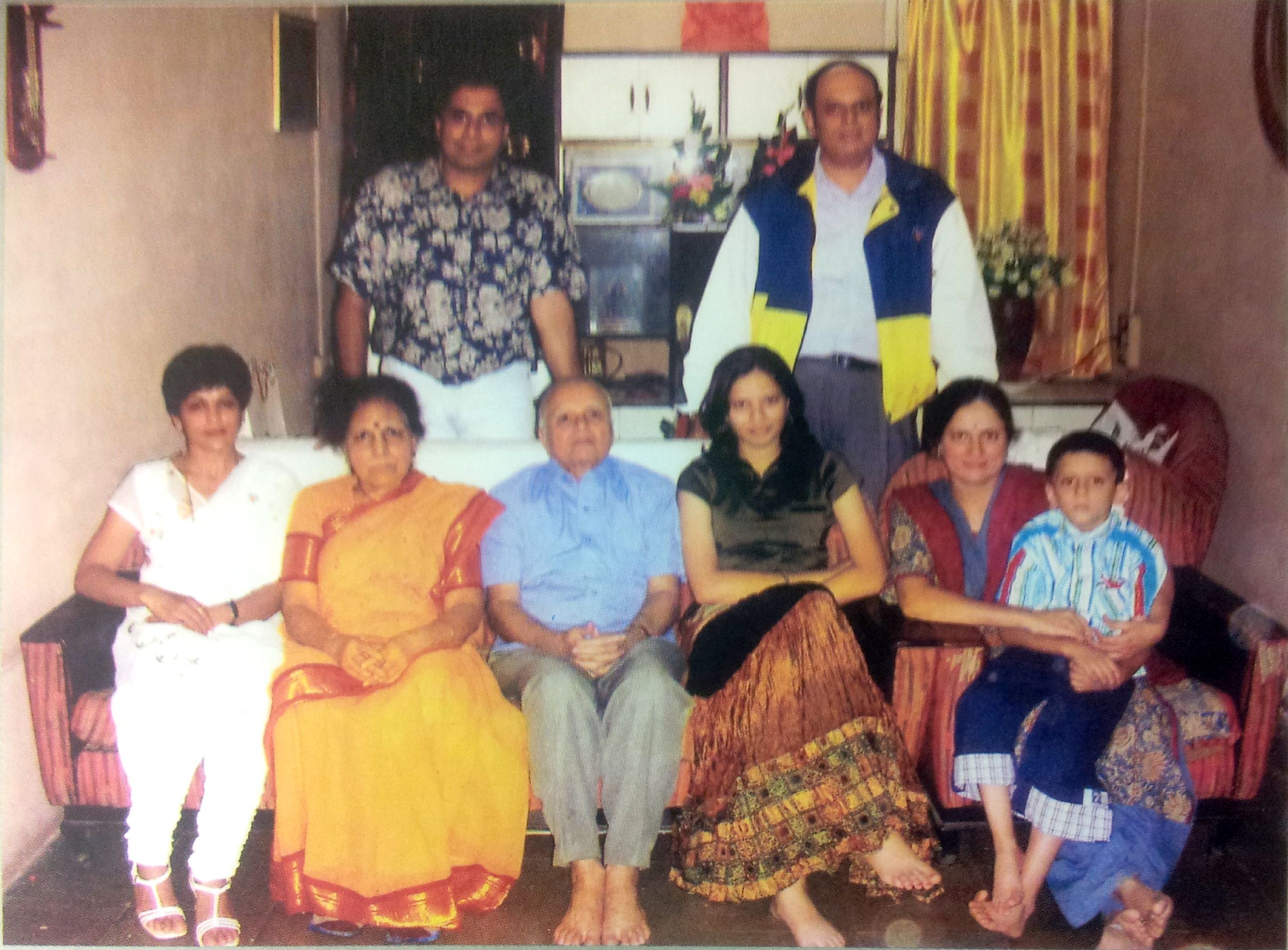 The family photograph: (l-r) Ashwini, Ujwala, Pa Bha, Niharika, Mamta and Kiran; (standing) Sachin and Bipin |