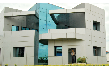 PrintWeek India Small Company of the Year 2010 - Vyoma Graphics. The 10,000 sq/ft unit is a fine example of a single-tier, pillarless unit which houses all operations under one roof. There are 25 windows that enhance cross-ventilation. The press flooring has an epoxy coating, which renders it dust proof. Landscaping ensures a clean-green environment and a spot for its team of 50 workers to unwind during breaks