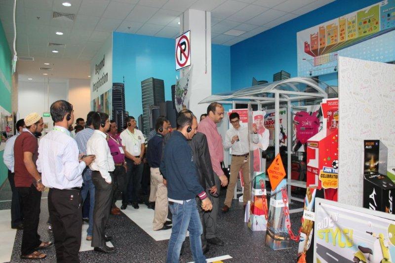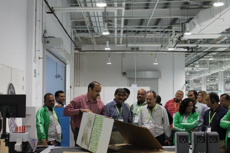A HP Indigo representative at the Centre of Excellence demonstrates the spectrum of products that can be rendered using HP portfolio including the Scitex for printing of corrugated sheets