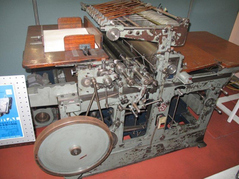 This is the Sakurai built screen printing machine. Incidentally, Sakurai was the first Japanese press manufacturer to participate in a Drupa (1952)