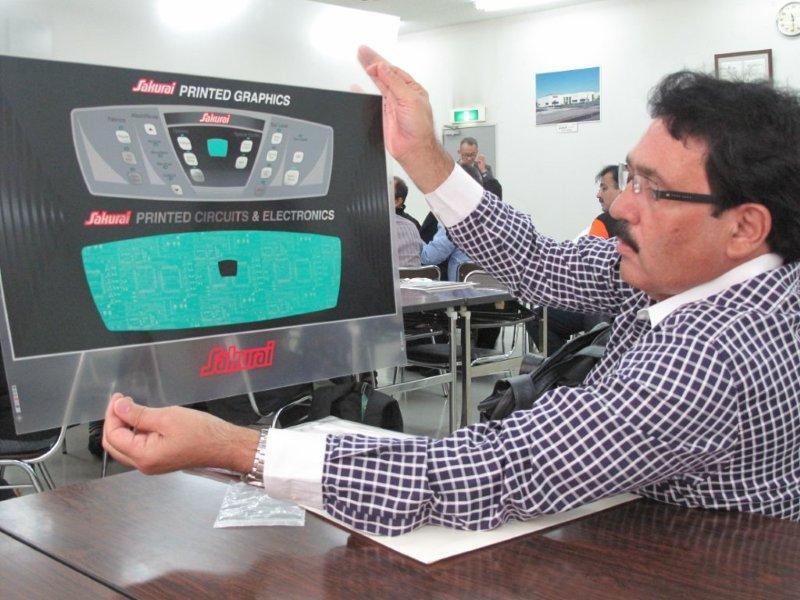 Ajay Gandhi of Kunal Enterprise, the Indian representative of Sakurai screen printing in India, explaining the multi-purposes of screen printing