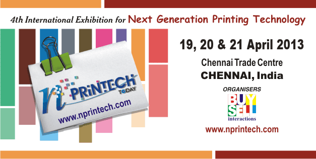 N Printech Today 2013 showcases in a nut-shell where today's print industry is headed. The Expo is an exclusive exhibition focusing on New Print Technology from Screen Printing, Pad Printing, Ink Jet Printing, Photo Printing, Offset Printing, Digital Printing, Laser Printing, Foil Printing, UV Printing, Relief printing, Letter press printing, Gravure printing, Intaglio printing, Textile printing, Flexography, Cutting & Binding equipment, Inks, dyes and chemicals, Hot wax dye transfer, Pre- and Post-press machines & accessories, Embroidery & Engraving machineries and related segments. The Expo is an interface between the industry members and technology providers in all segments.