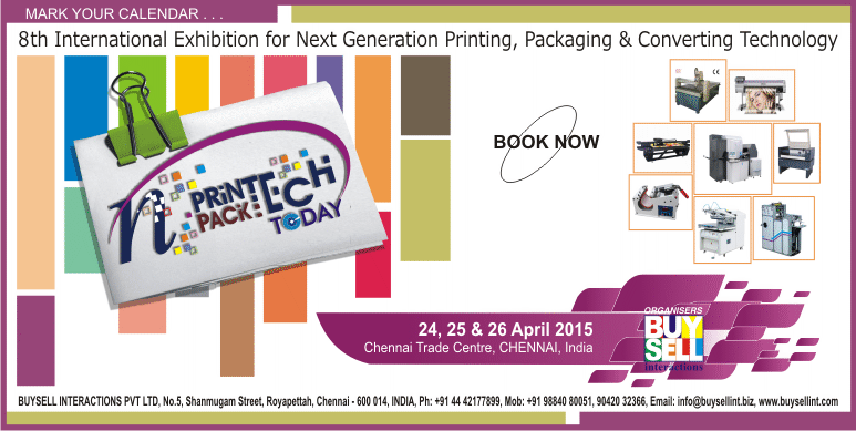 N PRINTECH TODAY 2015 is an exhibition for the Next generation printing technology encompassing all the innovations & latest technology available in the contemporary printing and print related industries on a single platform.