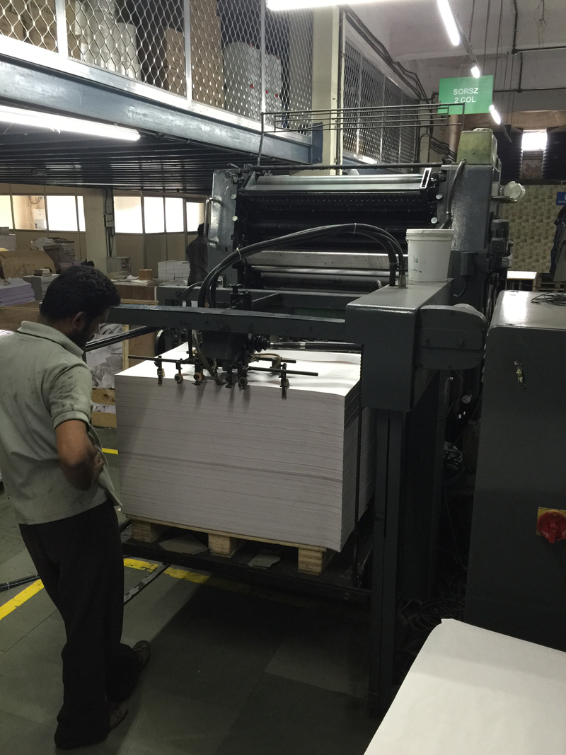 This is the newly procured Heidelberg SM 74 which has an online coating unit. Printplus uses this mainly for the printing of the covers of Femina magazines and several coffee table books