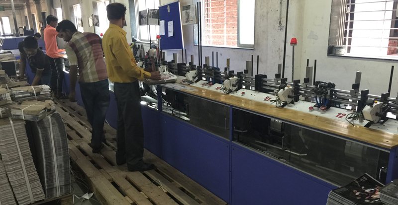 The only machine in the post-press section which is not Indian-made, a Muller-Martini seven-station saddle stitcher with 3KT and stacker