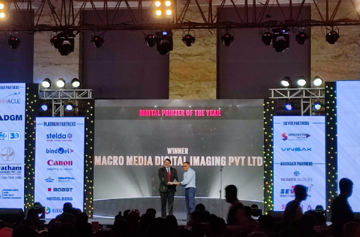 The run length for the wall covering for Skaid Designs was 2,320-sqft. It had digital UV print with eight colours plus ultra-drop 7-pl greyscale printing with multilayers on metallic fabric-based wall coverings from Dream Scape, USA, with specialised coatings with eye-catching sparkles.