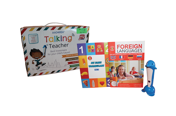 Talking Teacher is a series of books which is specially printed with codes. When the reading device is pointed on the codes, an audio file is activated. The reader can listen to the corresponding audio while reading the printed words.