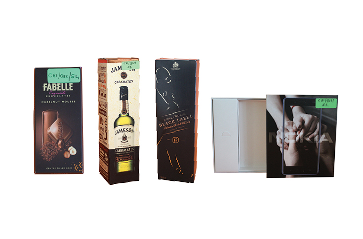 The Nokia rigid box is an integration of multiple components. It involves a strong base board wrapped with coated paper to meet both rigidity and print value addition, where a kappa board is used for the box, which is V-grooved and corner-punched. It is then taped and stuck to the printed label using protein-based glue. Printing is done on top coated paper, following by foil stamping to highlight the branding text.