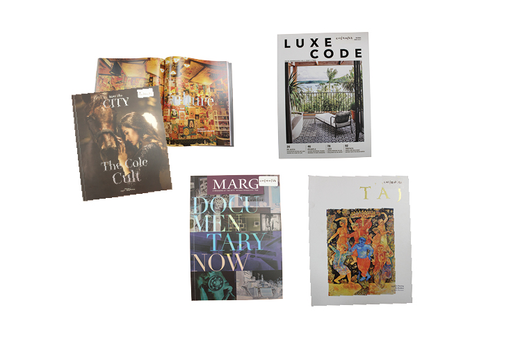 Marg A Magazine of the Arts is printed on 130gsm Lumi matt. The cover is on 300gsm Lumi matt card. The pages are section-sewn and perfect bound. Total 1,800 copies have been printed.