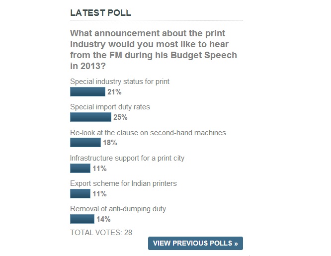 What announcement about the print industry would you most like to hear from the FM during his Budget Speech in 2013?
