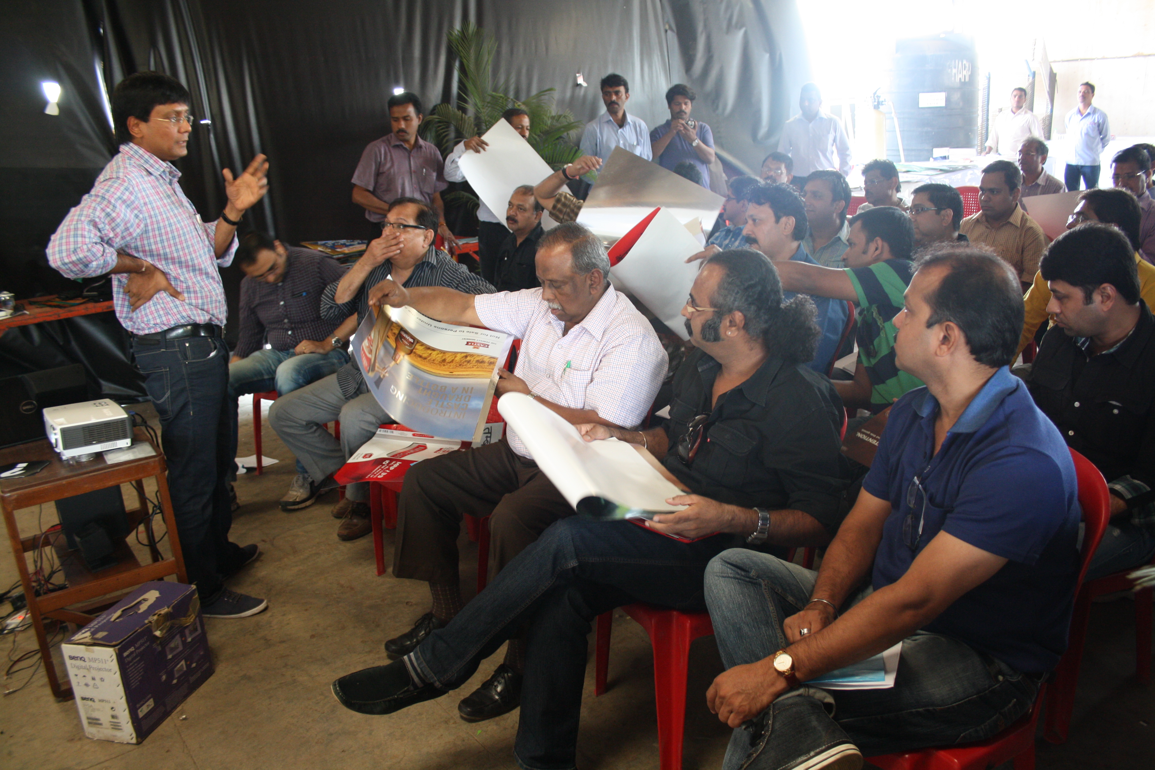 The group of 25 print professionals visited both the units of Spectrum Scan in Vasai and were thrilled to see, a 2,500 sq/ft unique 'experience lounge' - a 2,500 sq/ft ‘Bazaar’ of POP and POS items.