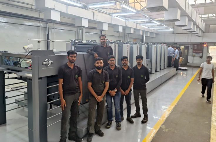 The RMGT 920PF-8 will be RMGT’s second eight-colour perfector in India equipped for one-man operation. The machine is equipped with a fully automatic simultaneous plate changing system which takes only two minutes for changing the plates for all the eight printing units. In addition, the press is equipped with LED-UV system from GEW UK and RMGT’s inline registration, colour control and inspection system.