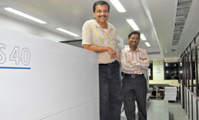 The duo set up Unique Offset and installed a brand new four-colour press, a Manugraph Shiva when other printers in Pune were buying secondhand presses. This was followed by purchase of the first Komori Spica 426, a secondhand Lithrone 526, a Kodak Trendsetter 800 CTP system, two cutting machines, two perfect binding machines and a stitching machine.