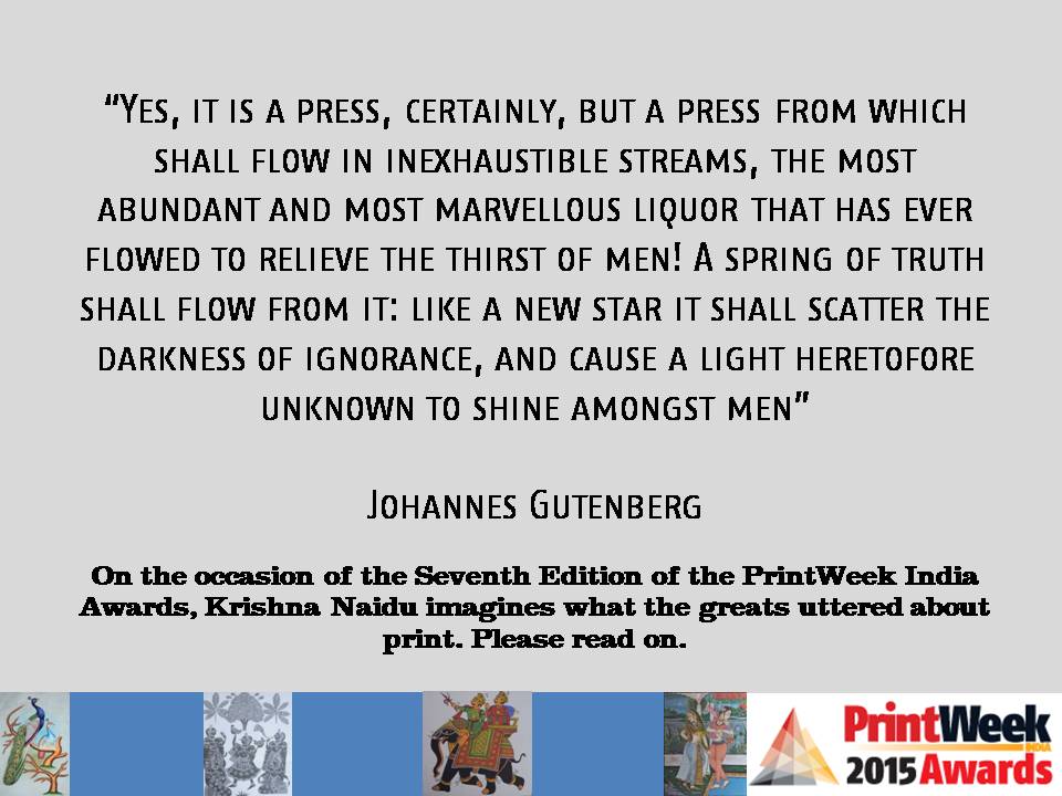 With apologies to Abraham Lincoln to Marie Curie, from Mahatma Gandhi to Tagore, and others, Krishna Naidu looks beyond the industry and presents rare insights into print. These quotes are great for bringing a bit of humor into your shop floor. They will help lighten the mood. You can use it in your office as a screen saver, and, of course, they’re fun to share with your customers. Some of the most quotes, in our opinion, are witty. Also they are wise — conveying some