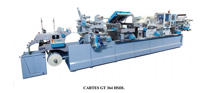 The GT 364HSDL operates at a speed of 15,000 cycles of die-cutting or hot foil stamping and 7,000 cycles of screen printing per hour. All the individual stations are integrated by technology from Siemens and saves 40 % of energy consumption. The machine also hosts the laser station, that can do full cut, kiss cut, perforation etc of various shapes.