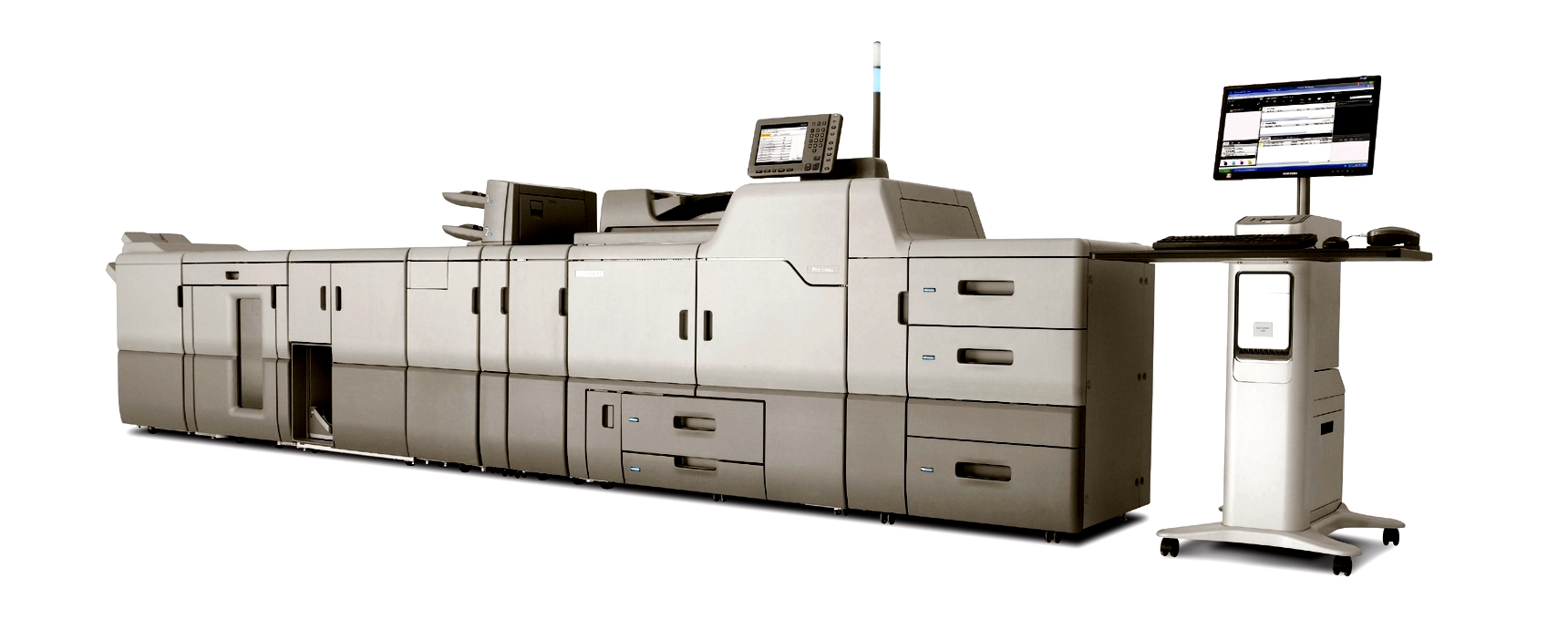 The top speed in both mono and colour for the Pro C751 series is 75 pages-per-minute (pp/min). The machine is fitted with an LED light to indicate which tray is in use. This enables the user to refill another tray and keep it ready for the next job.