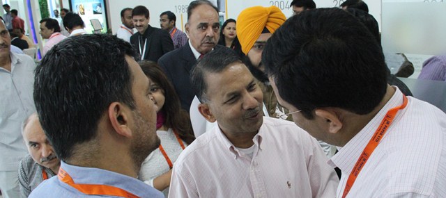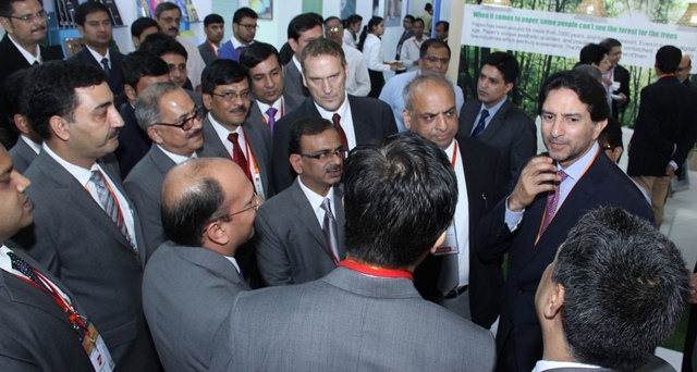Rajinder Gupta, chairman, Trident Group, a first generation entrepreneur, interacted with the visitors at the Trident stall during Paperex 2015
