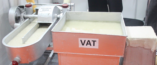 The machine on display at the Handmade Paper Pavilion, under the Directorate of Handmade Paper and Fibre Industry, can manufacture up to 250 kg of handmade paper per day