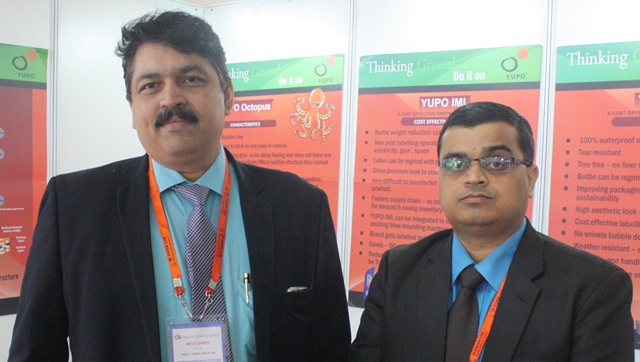 (From left) Prashant Mandewal and Pankaj Kumar Jha of Mitsubishi Chemical promoted their brand Yupo at Paperex 2015