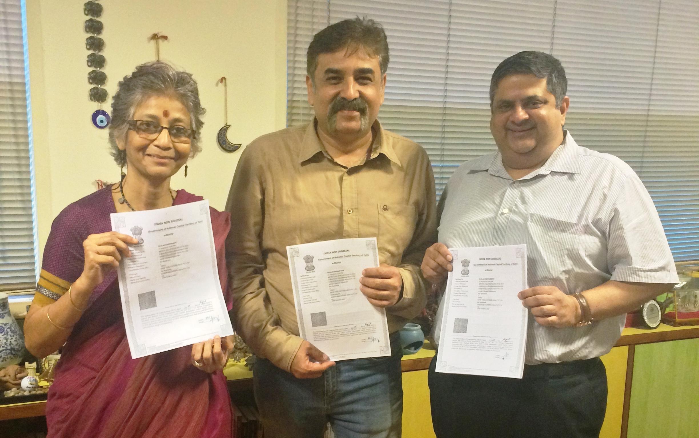 Vivek Mehra, MD and CEO, SAGE India, and Mandira Sen and Harsha Bhatkal, directors, Bhatkal and Sen (of Stree and Samya), signed the agreement in a meeting held in New Delhi recently.
