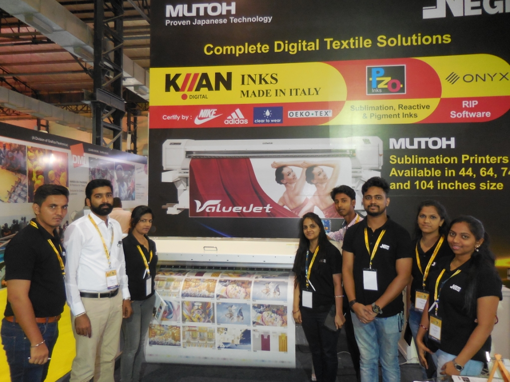 First time exhibitor, Negi Sign System and Supplies, the Indian manufacturer for signage and textile industry and a distributor of Mutoh in India showcased the Mutoh Valuejet 44inches and 64 inches for the sublimation market. Negi also highlighting Kiian Digital, an ink manufacturing company from Italy, PZO inks and ONYX RIP software