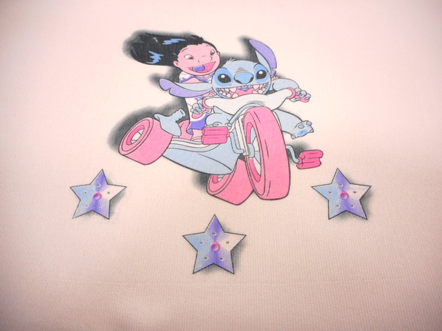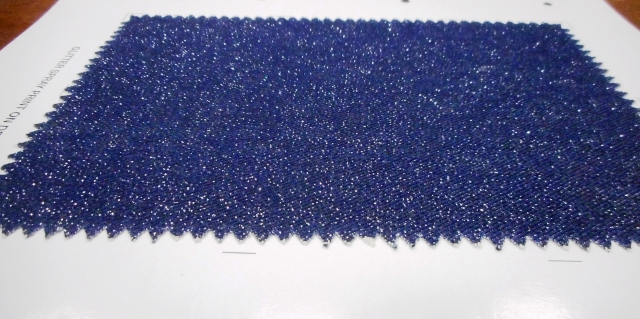 This image shows the glitter print effects on denim. A mixture of Texiscreen aqua AJ382 metallic ink medium plus metallic glitter powder in the ratio of 95:5 is prepared to achieve this effect